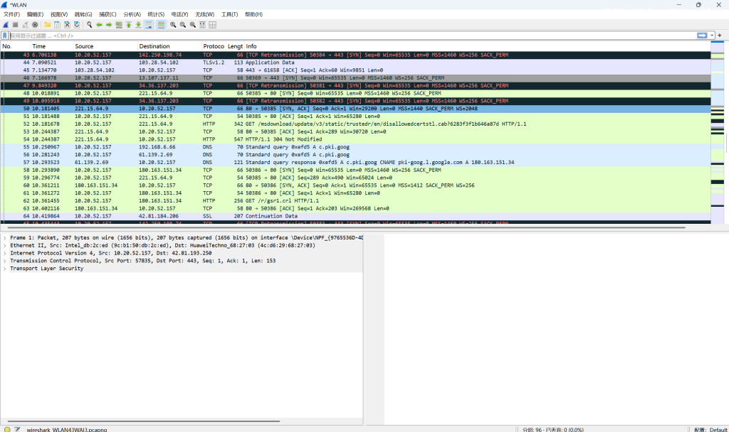wireshark抓包: