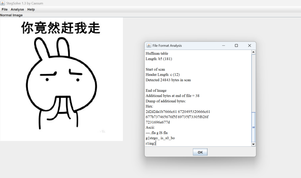依然使用stegsolve,得到flag:flag{stego_is_s0_bor1ing}