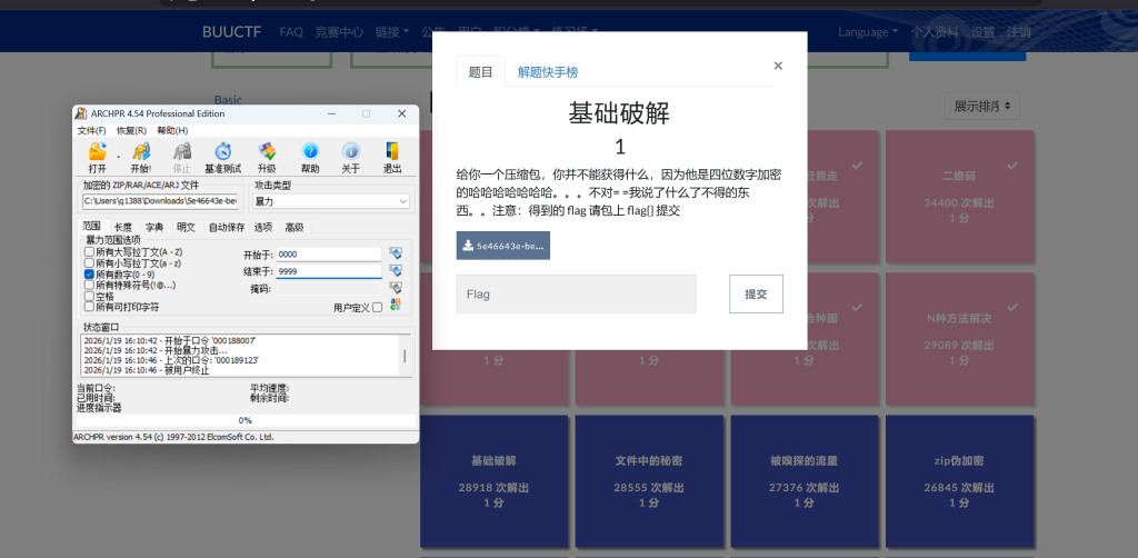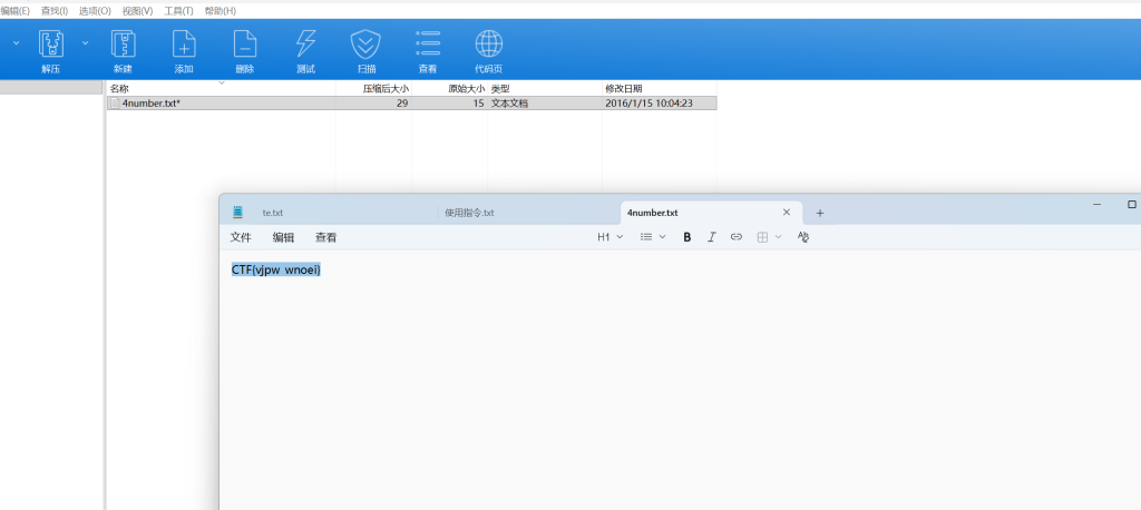 最后用ARCHPR爆破解出密码7639,打开txt得到CTF{vjpw_wnoei}(但是buu上提交格式是flag{},需要改下包装提交)