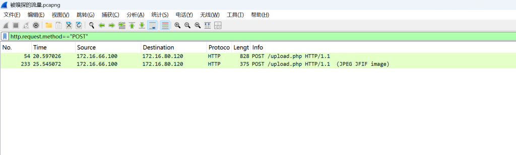 - 如果协议分级中有文件传输协议或是有传输媒体文件内容优先进行导出,一定要使用foremost工具进行辅助。