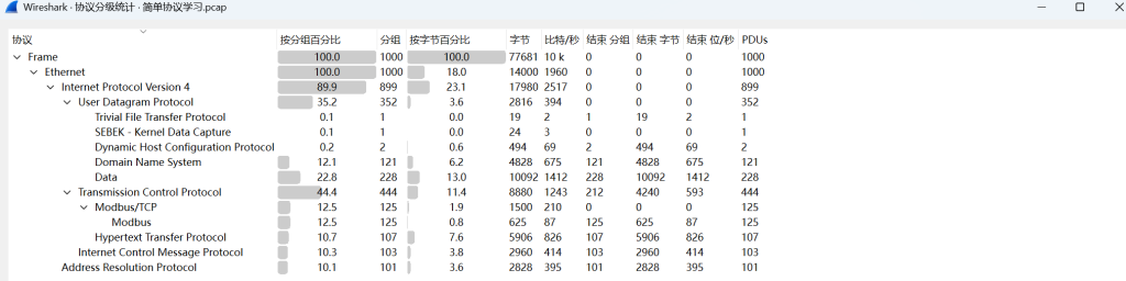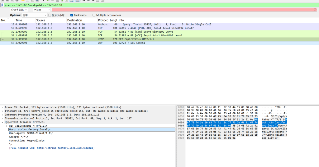 包含 Modbus/TCP(502)、OPC UA(4840)、DNS(53)、HTTP(80)、ICMP、SNMP(161) 等典型工控与管理流量。