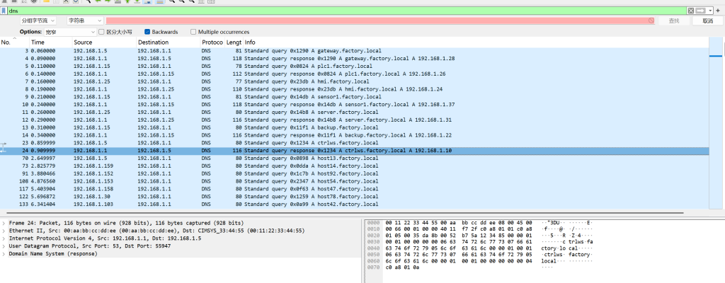 找出控制站域名 ctrlws.factory.local 的解析 IP。
