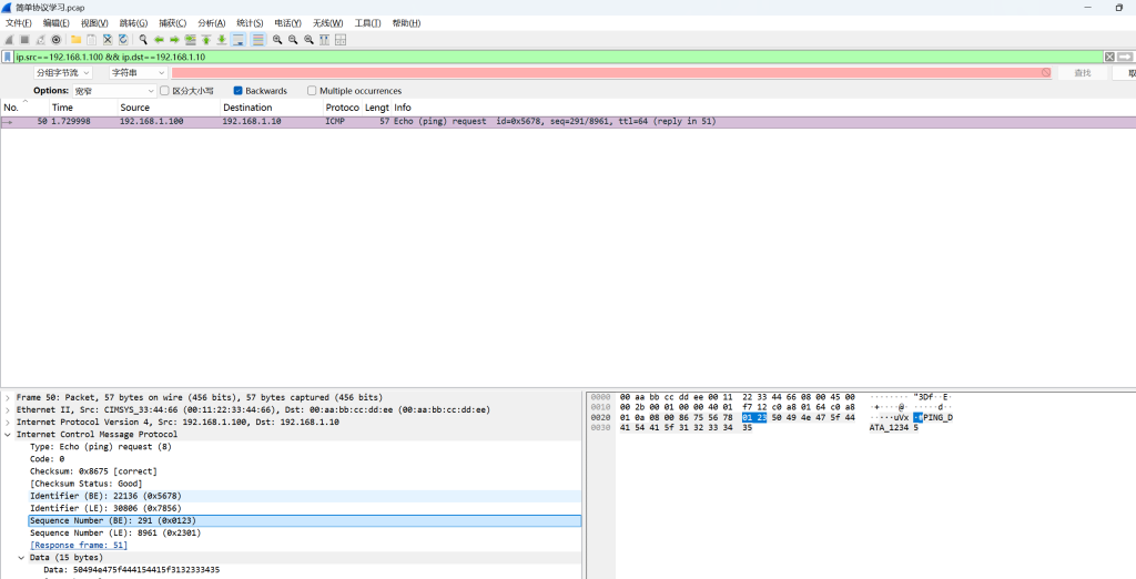 攻击者(192.168.1.100)对控制站发起了 ICMP Echo Request(ping)。找出该 ICMP 请求的序列号(Sequence Number)。