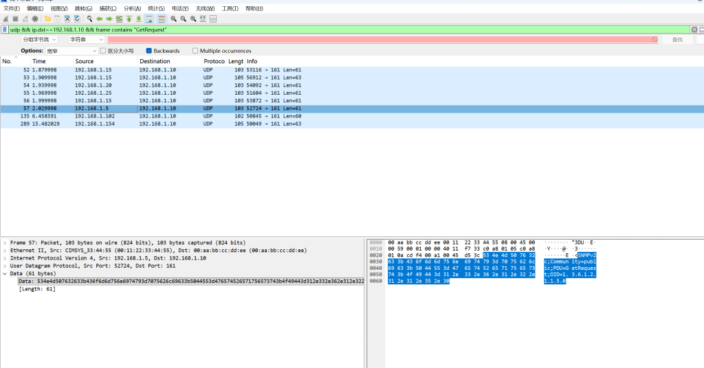 udp && ip.dst==192.168.1.10 && frame contains "GetRequest"