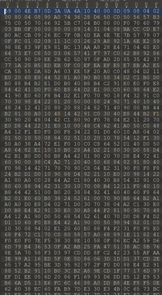 #先创建字典K,将每高位节的四个二进制(半字节/nibble)保存成字典中的一个项目直到遍历整个data