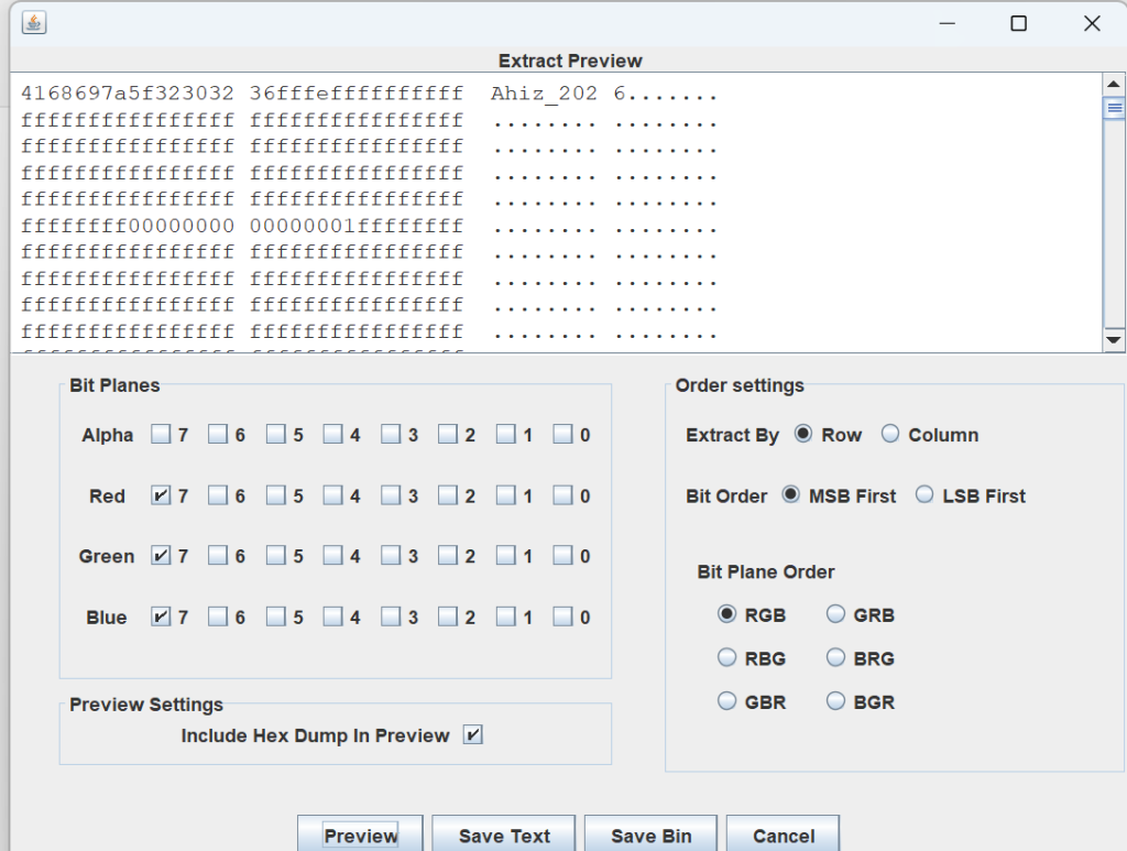 用stegsolve看,在通道7的时候左上角会出现黑点点