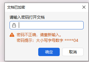 docx是加密文件,连续输入2次错误后会显示密码后2位