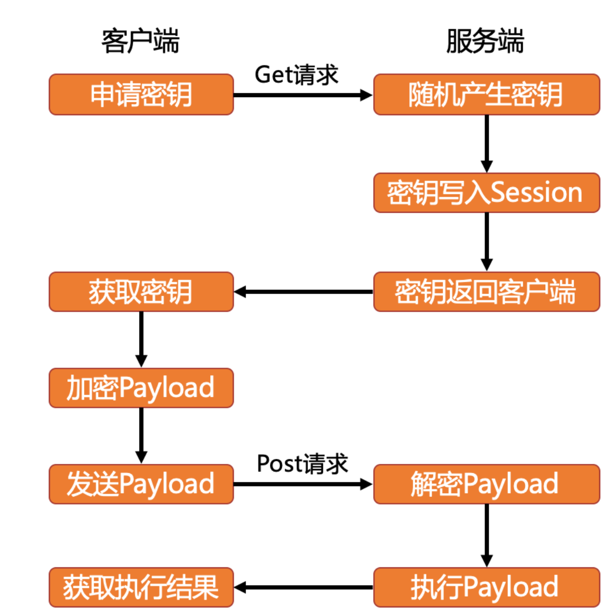 服务器解析二进制payload文件,执行任意代码,并将执行结果加密返回